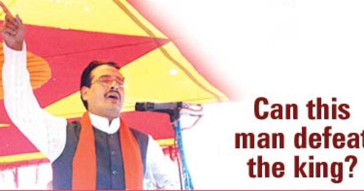 Huge Congress banners, many calling him Raja Digvijay Singh -- referring to his family's royal lineage -- fly out of homes, shops and petrol pumps. Zippy election slogans tuned on popular Hindi film songs like Mitwa, oh mitwa from Lagaan and popular remix Kaanta laga rent the Raghogarh air.
