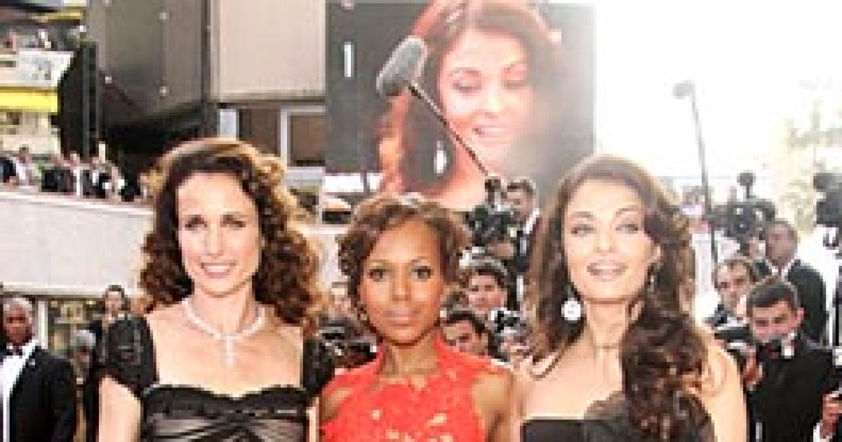 American actresses Andie MacDowell (left, who featured in Four Weddings And A Funeral) and Kerry Washington (centre, who had a role in Ray) pose with Ash.
