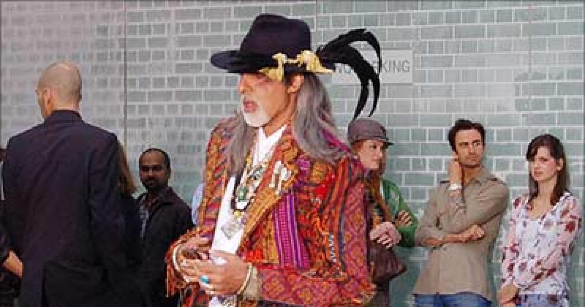 What a brilliantly bizarre costume. The Big B may be getting ready to surprise us, and we owe Sanat big-time for the scoop.