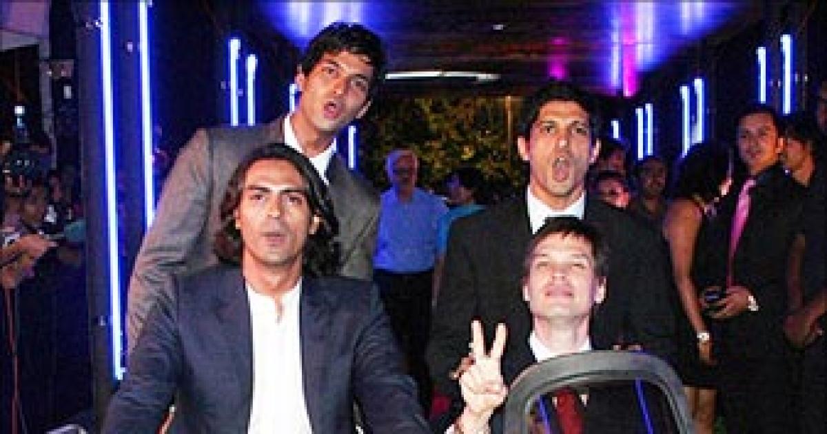 newFarhan Akhtar is known to do everything in style. At the Mumbai premiere of his acting debut, Rock On, Farhan -- along with co-stars Arjun Rampal, Luke Kenny and Purab Kohli -- entered the venue on a scooter.