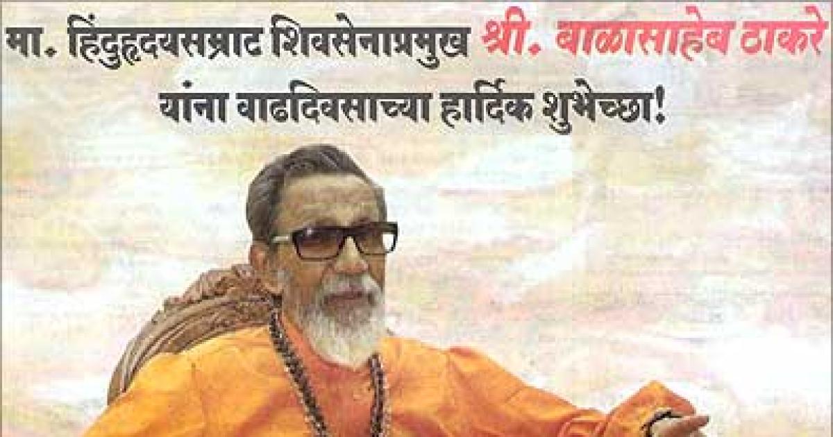 The ad says, 'Wishing a very happy birthday to Hindu Hriday Samrat' Shri Balasaheb Thackeray from Sanjay Dutt and Manyata Dutt.'