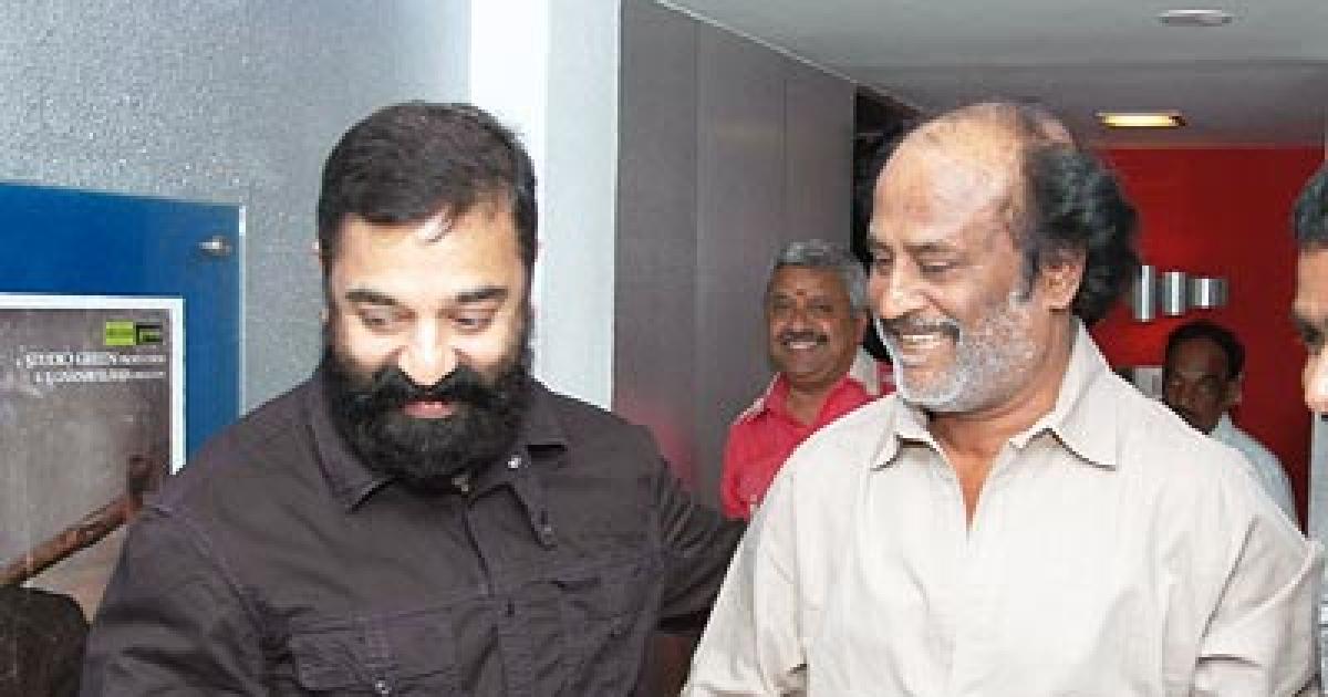 In the picture: Kamal Haasan welcomes Rajnikanth during a special screening of his Tamil film Dasavathaaram in June.