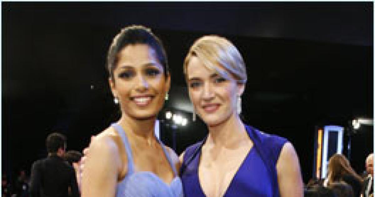 Freida poses with Kate Winslet. Photograph: Mario Anzuoni/REUTERS