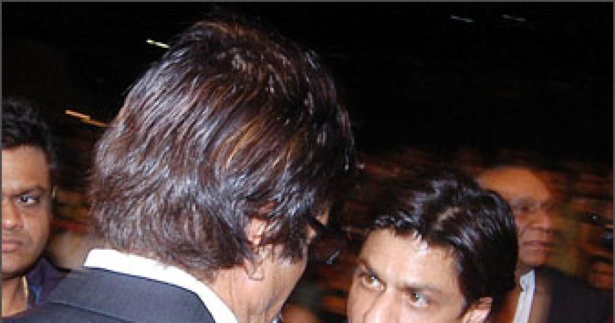 Judging from this phtotograph, it looks like SRK and Amitabh Bachchan are at least speaking to each other. The two have reportedly had some friction ever since Shah Rukh took over the television show, Kaun Banega Crorepati, made popular by the Big B.