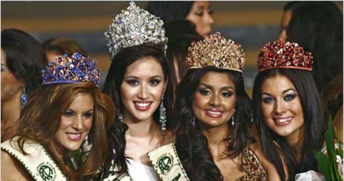 In the picture (from left to right): Miss Earth-Water Silvana Santaella Arellano from Venezuela, Miss Earth 2007 Jessica Nicole Trisko from Canada, Miss Earth-Air Pooja Chitgopekar from India, and Miss Earth-Fire Angela Gomez from Spain.