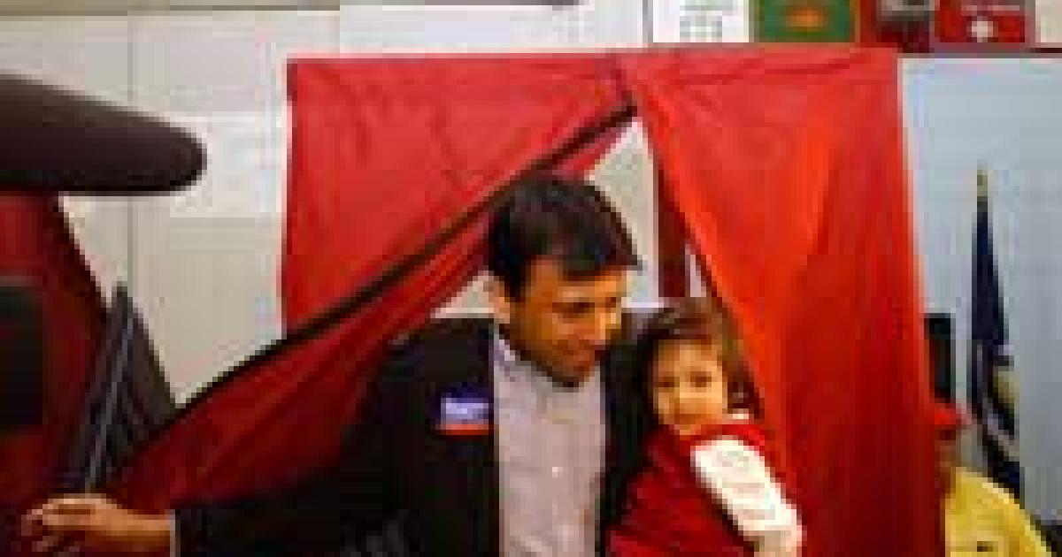 On Saturday morning, Jindal arrived at the Kenilworth Middle School in Baton Rouge accompanied by his 21-month-old daughter Selia Elizabeth and wife Supriya to cast his vote.