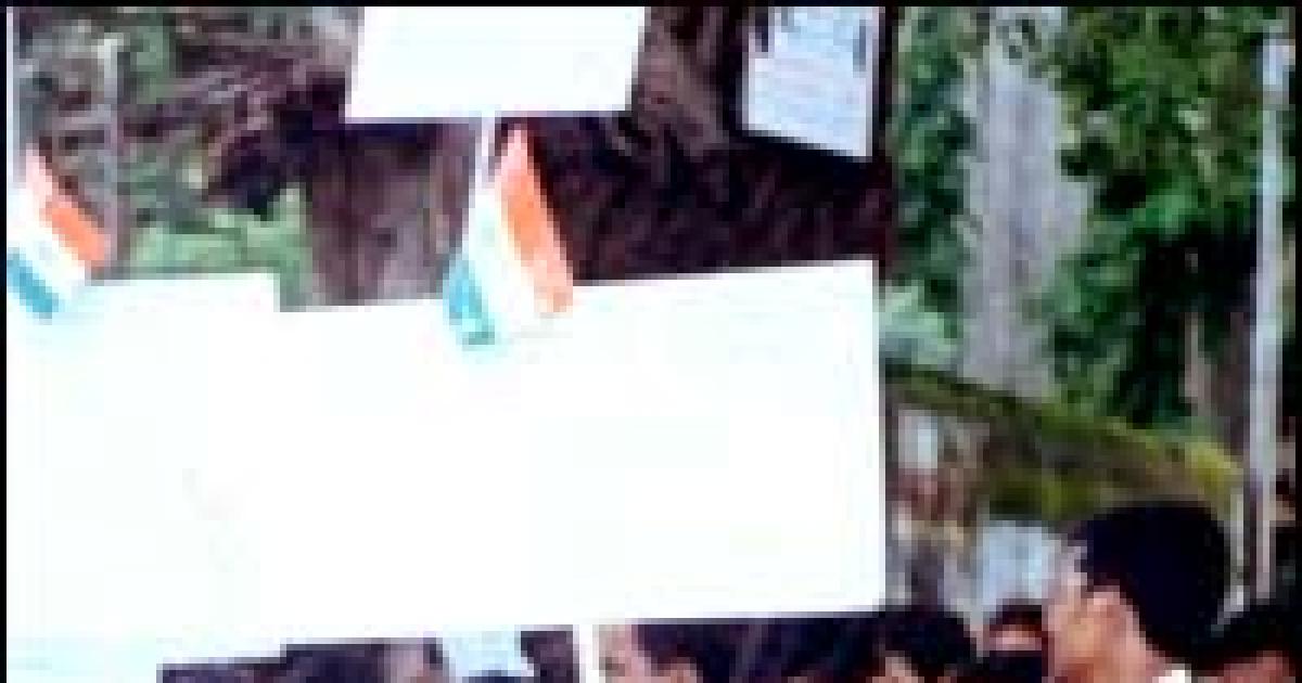 "Look at this picture [edited, with Ansari on the right]," says Mohammad Anjum Ansari. "My brother is holding our national flag on Independence Day! We were celebrating Independence Day 15 days ago. And now the police say he is involved in the twin bomb blasts! This is not true. My brother is innocent."