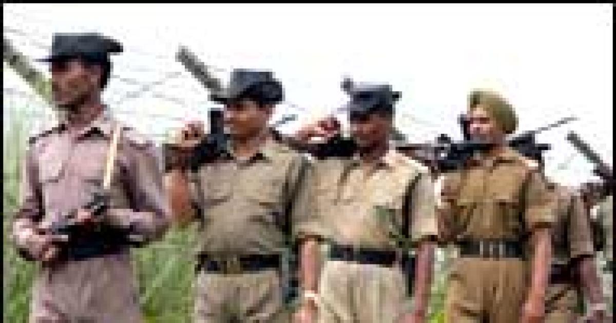Image: Border Security Force troopers along the fenced India-Bangladesh border in Assam