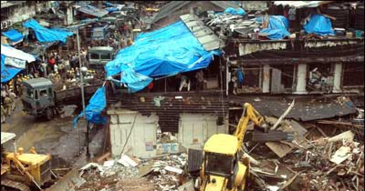 Image: BMC bulldozers pulling down one of the complexes allegedly owned by underworld don Dawood Ibrahim in Mumbai on Saturday, July 29, 2006.