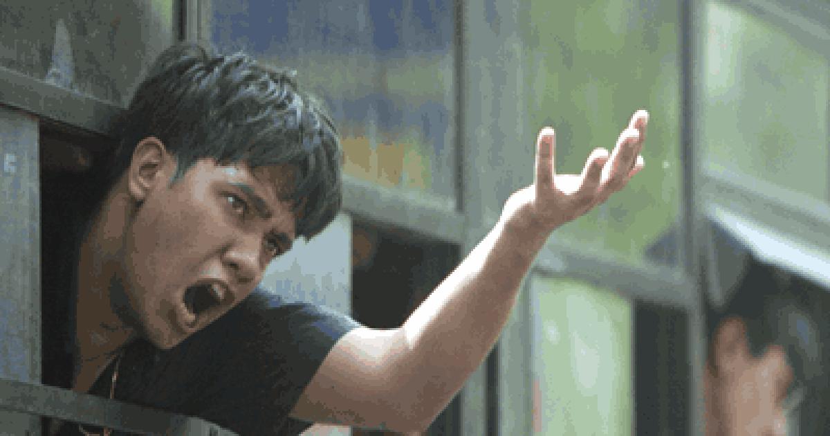 Image: A medical student shouts anti-reservation slogans from a police van after being arrested during a demonstration.
