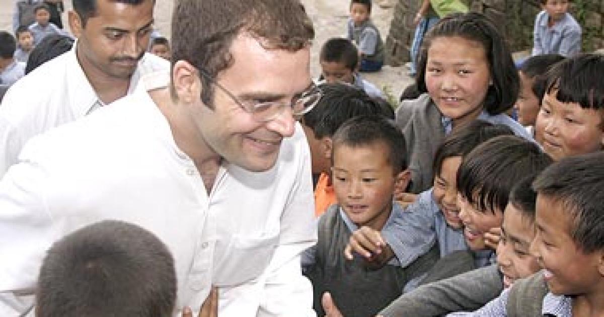 Congress MP Rahul Gandhi with children at the Tibetan Children's Village School in Dharamsala after his meeting with the Dalai Lama in Mcleod Ganj on Tuesday.