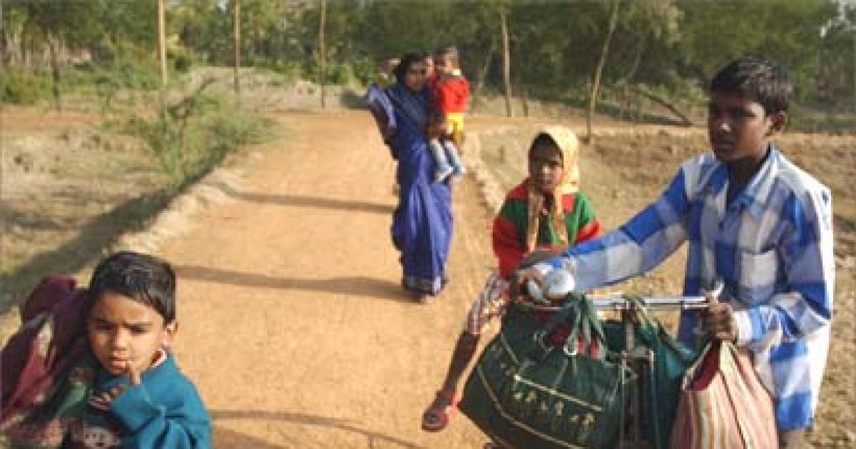 Villagers carry their belongings as they flee Nandigram, some 100 Kms south of Kolkata, January 7, after clashes between villagers and a gang of armed men.