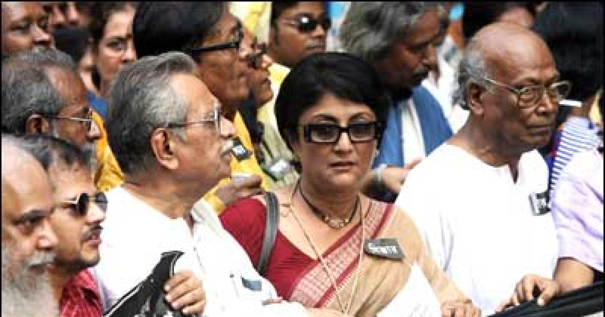 Film directors Mrinal Sen, Goutam Ghosh, Rituparno Ghosh, Aparna Sen, painters Jogen Chowdhury and Shuvoprasanna, poet Joy Goswami, theatre personalities Bibash Chakraborty, Saonli Mitra and Kaushik Sen took part in the march, wearing black badges.