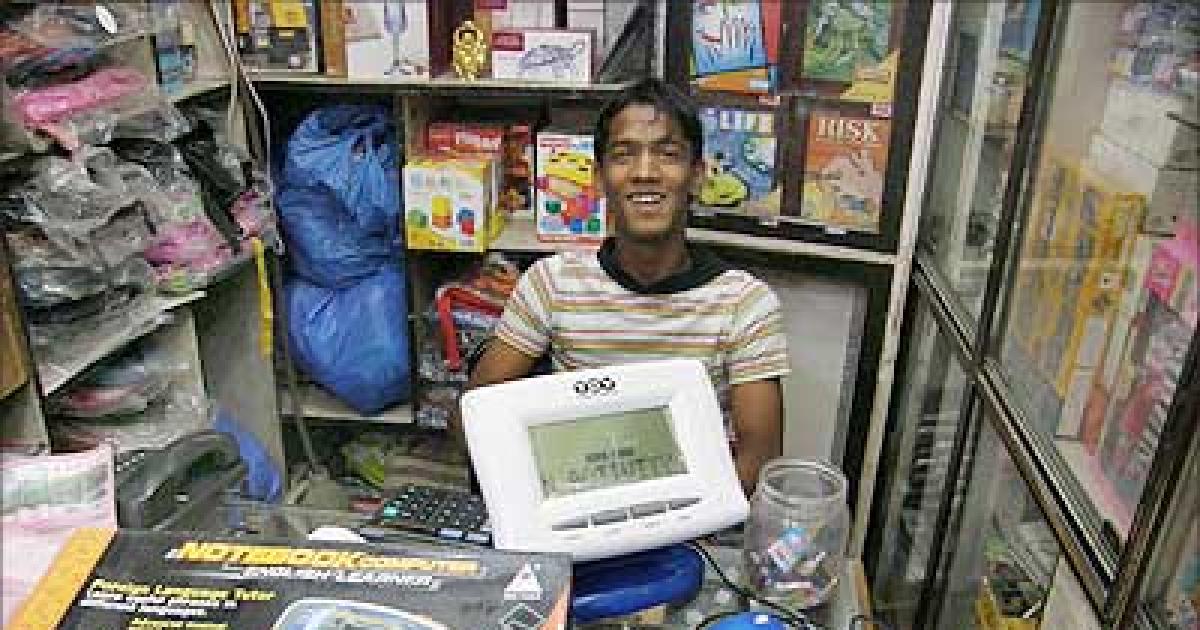 The challenges Lomas throws at his class, and the way they respond, underline the genius of simplicity. Like the time Lomas saw a $15 dollar laptop in a Mumbai toy store, in photograph above, which was marketing the gadget as an 'educational computer' that teaches English, spelling, mathematics and music. "In my limited experience, I found them too difficult to use and not much fun," Lomas wrote on his blog, where he picks his students' brains.