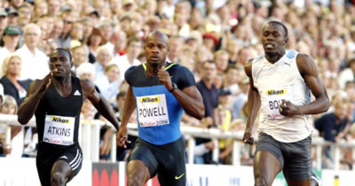 Bolt, who took the world record off Powell earlier this year by clocking 9.72 seconds, nearly caught up with his compatriot toward the end of the race and finished just 0.01 behind Powell, who clocked 9.88 seconds.